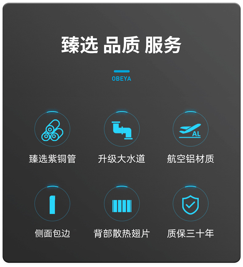 材質(zhì):電解純紫銅管 + 6063航空級(jí)鋁材