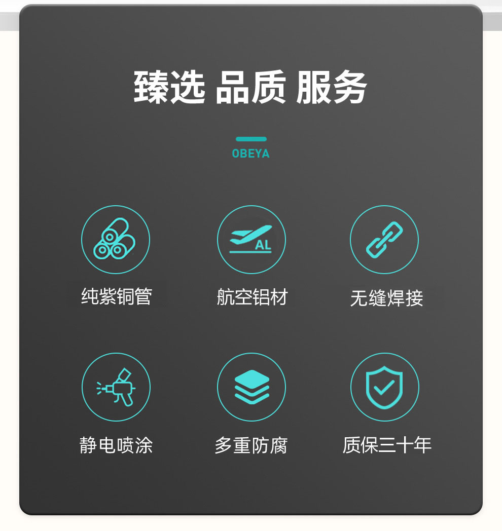材質(zhì):脫氧純紫銅管 + 6063航空級(jí)鋁材
